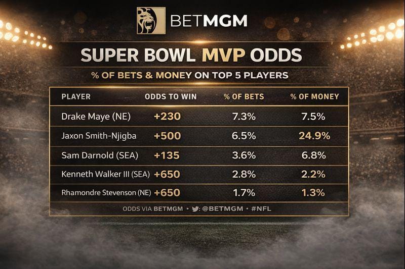 🏈 Super Bowl Props Public Betting Report (via BetMGM)