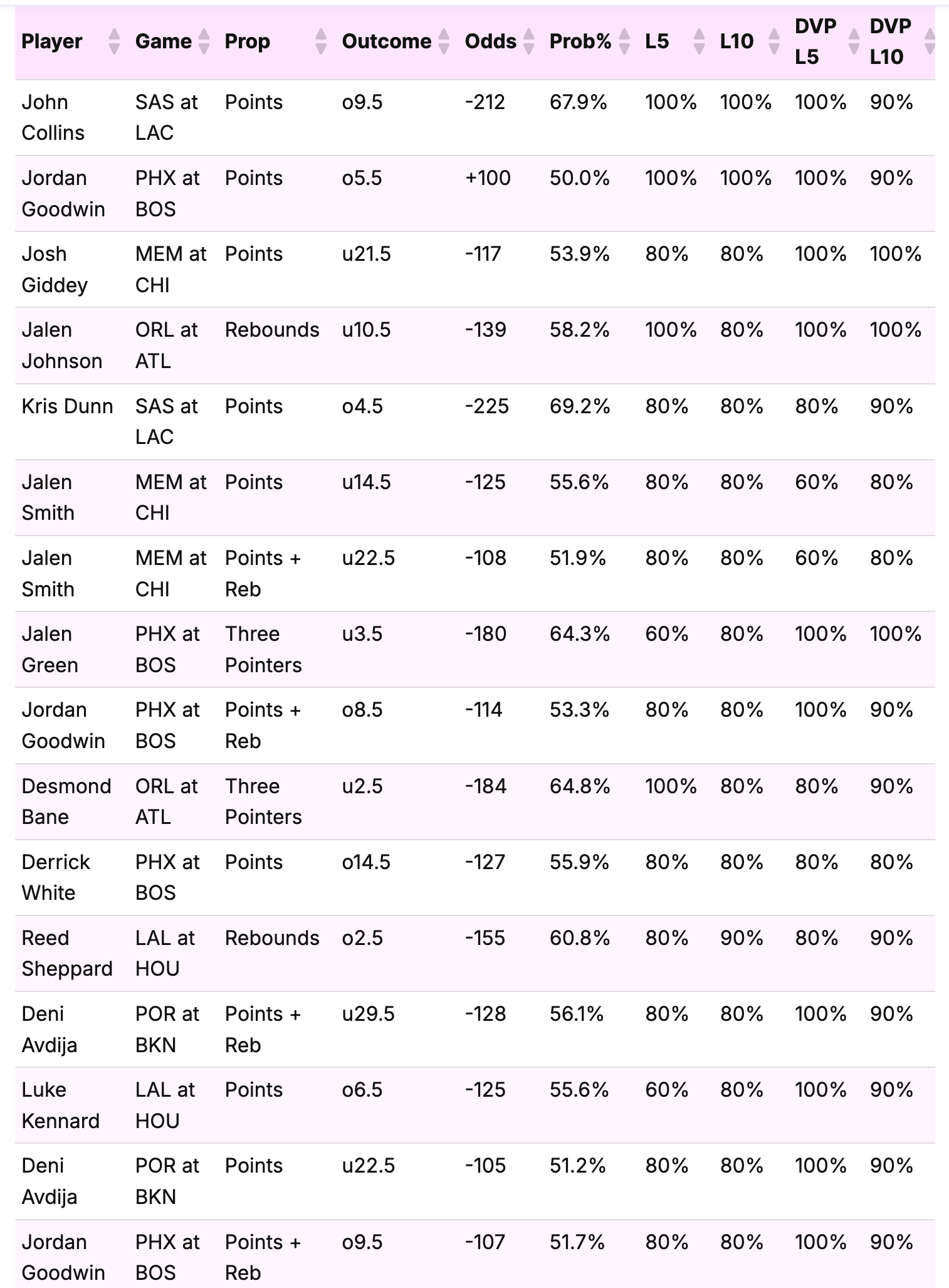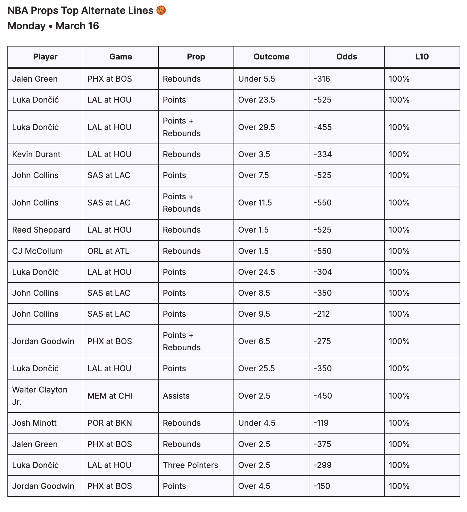 As shown, many of the heavier moneyline prices align closely with high implied probabilities, reinforcing the edge behind these selections.