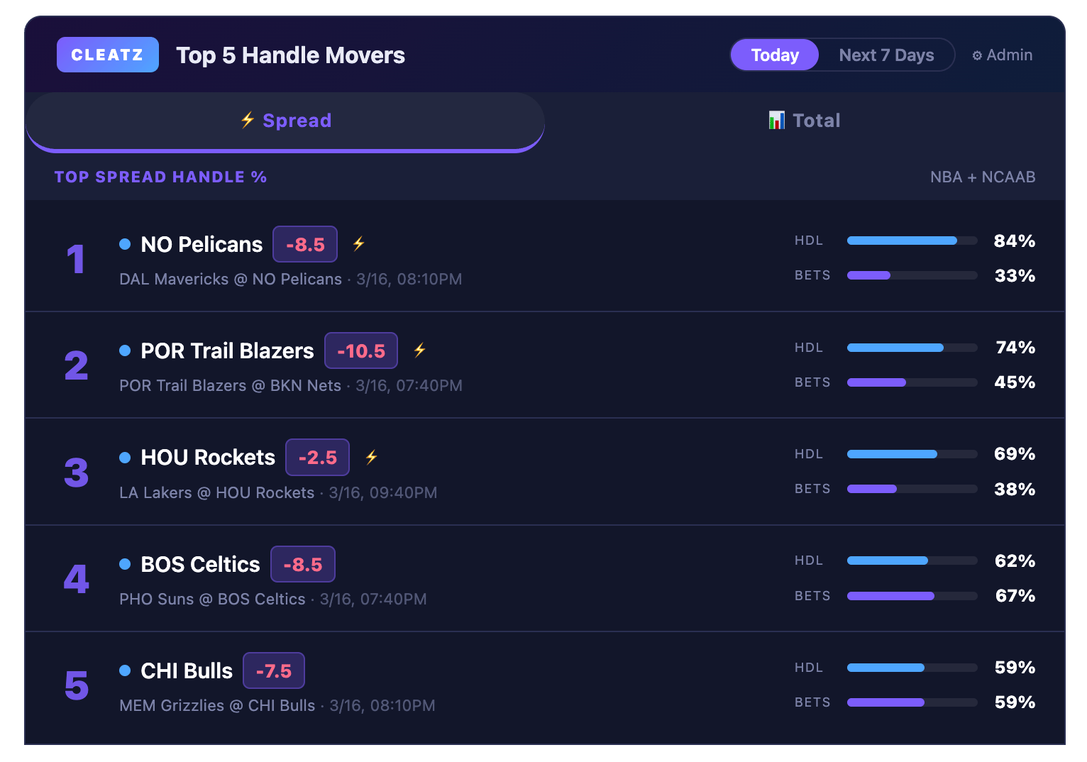 Before we jump in, take a look at our latest tool below that ranks the top public action for each day by overall handle. If you like to fade the public, this is for you.